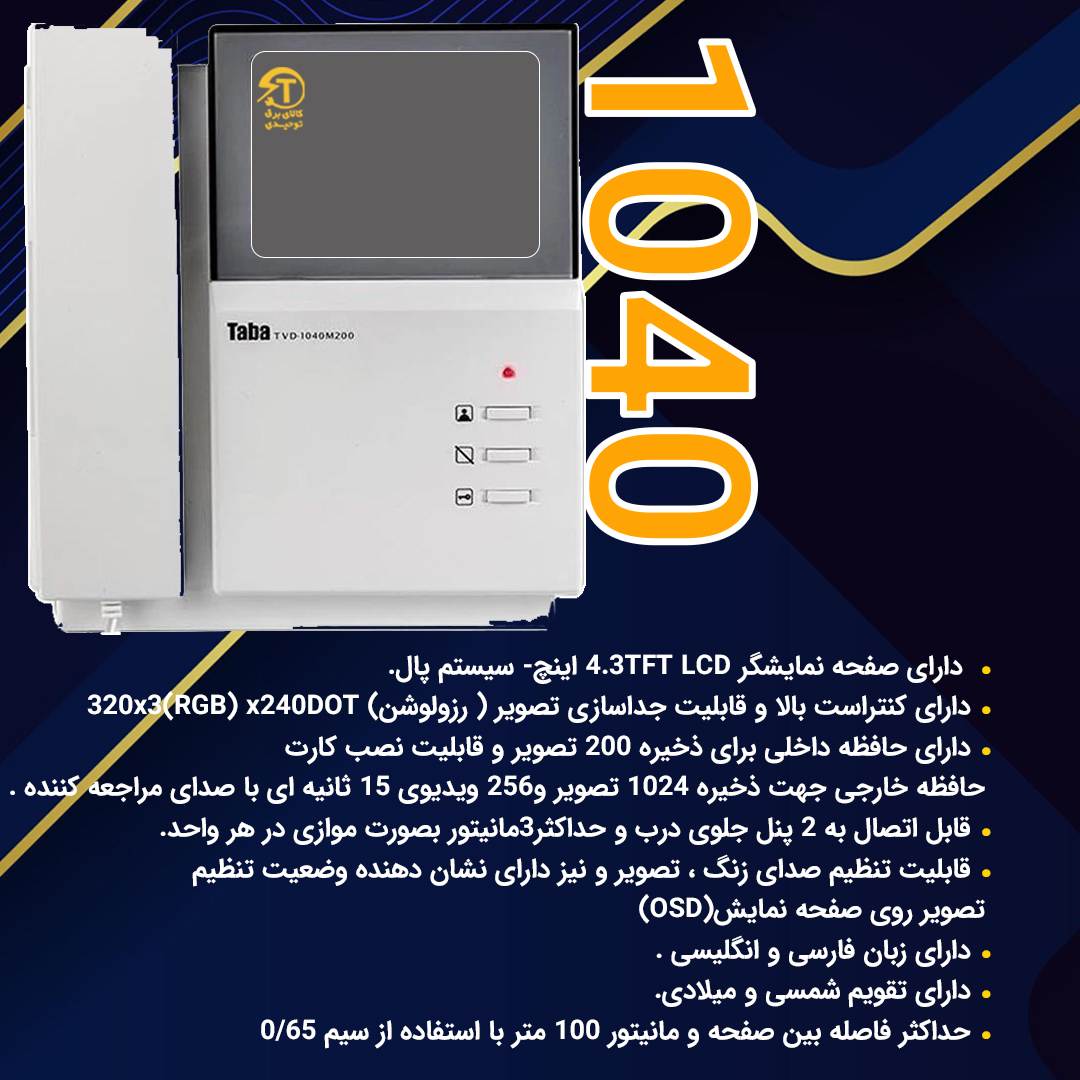 اگر به دنبال یک آیفون تصویری باکیفیت، خوشساخت و مقرونبهصرفه هستید، مدل با انتخابی مطمئن برای امنیت و آسایش شماست. صفحه نمایش رنگی با وضوح بالا، طراحی زیبا و کاربرپسند، صدای شفاف و بدون نویز، عملکرد پایدار و طول عمر بالا، نصب آسان و سازگار با پنلهای تابا. با این مانیتور، قبل از باز کردن درب، با خیال راحت مهمان خود را ببینید.